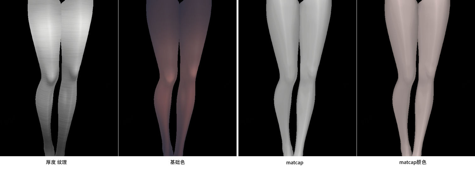 经查看几乎所有丝袜的材质都使用的第三张Matcap,并且有0.5的缩放和0.5的偏移,也就是只使用了左下角的部分。